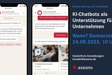 Am 7. September um 10 Uhr haben wir einen Online-Austausch zum Thema „Nutzen von KI-Chatbots für Unternehmen“ geplant. In dem kostenlosen Zoom-Meeting sprechen unsere Chatbot-Experten mit Ihnen über die Vorteile eines KI-Chatbots, teilen Erfahrungswerte aus der Praxis und zeigen Ihnen eine Live-Demo. Eine zeitnahe und individuelle Bearbeitung von Kundenanliegen wird immer wichtiger, um Weiterlesen…