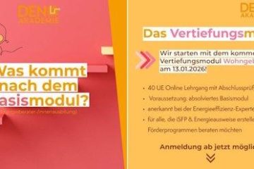 03.02.2026, 09:15-12:45 Uhr, Webseminar iSFP für Energieberatende in der Praxis – Tipps zur Förderung, Umsetzung und wie Sie Stolpersteine vermeiden Dieses Seminar präsentiert das Werkzeug des iSFP in der praktischen Umsetzung für Energieberatende. Inhalte Entwicklung Fördermittellandschaft KfW, BAFA Wirtschaftlichkeit und Förderung im Hinblick auf die eigene Preisgestaltung Praktische Erstellung Weiterlesen…